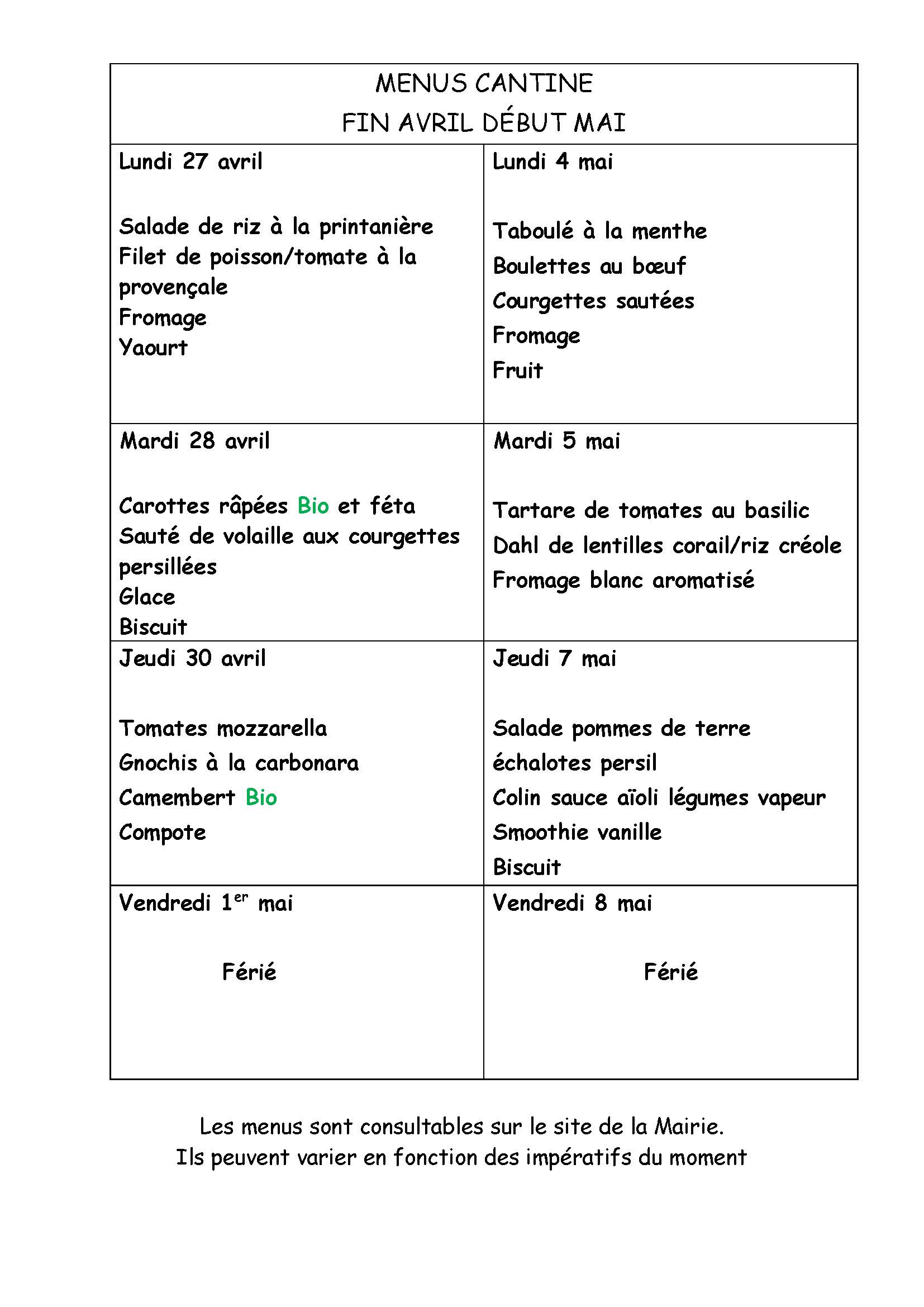 Durant les vacances d’été, merci de contacter directement la mairie.