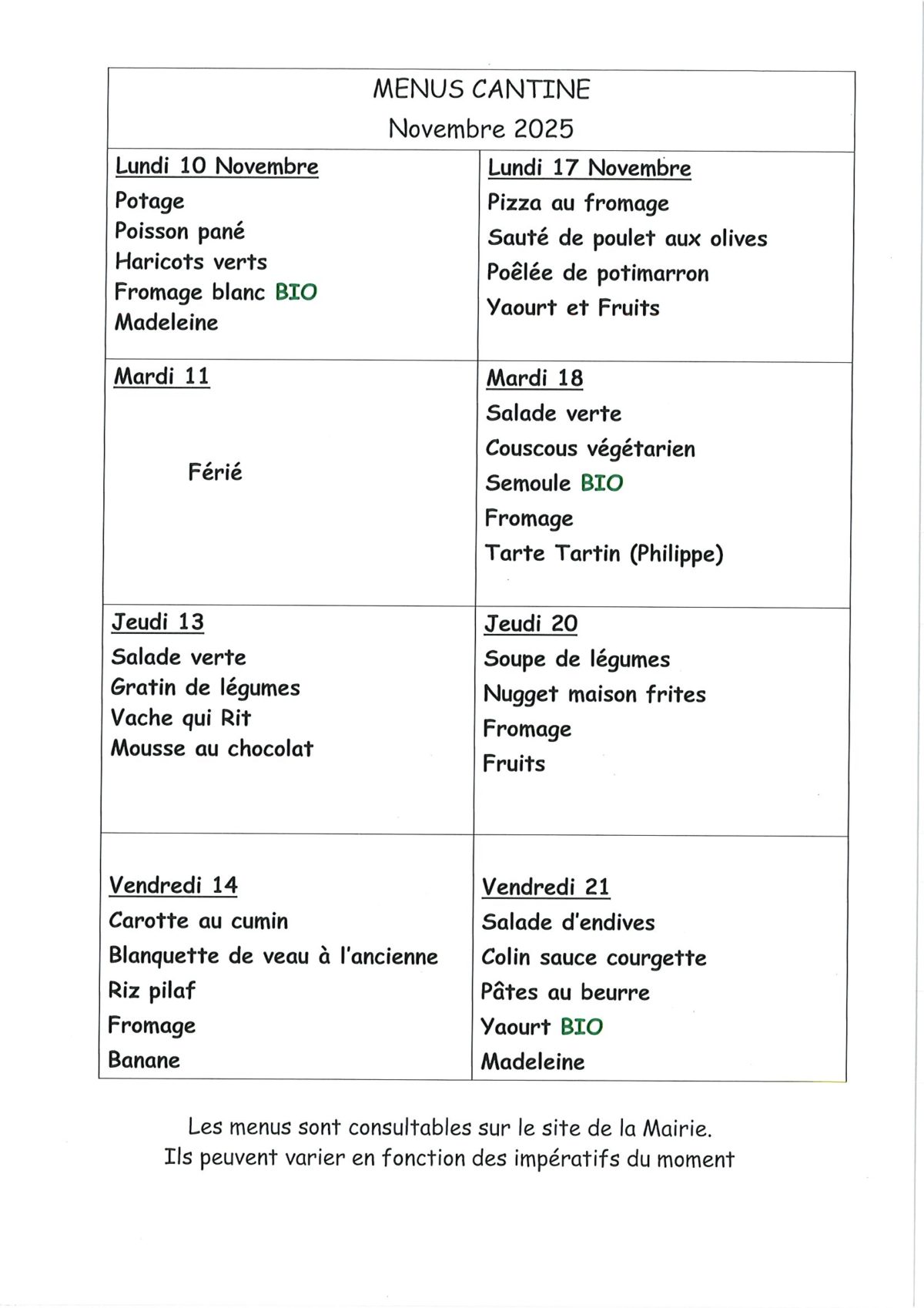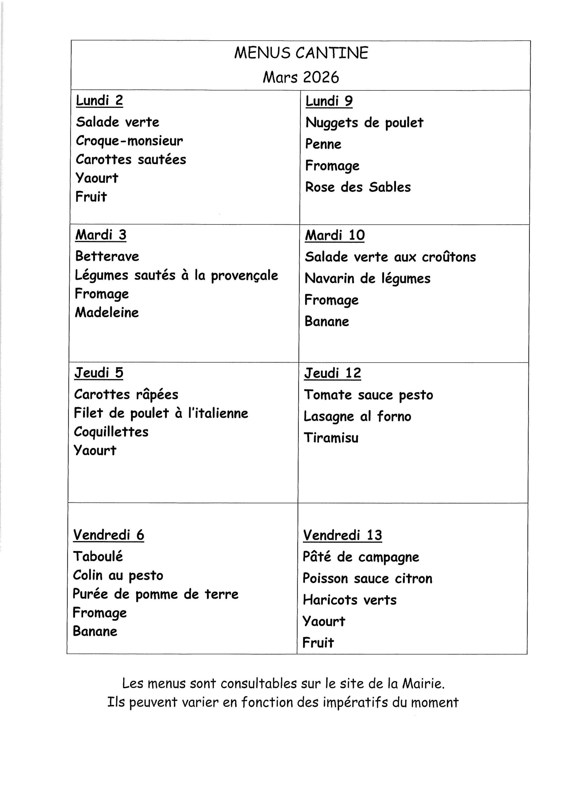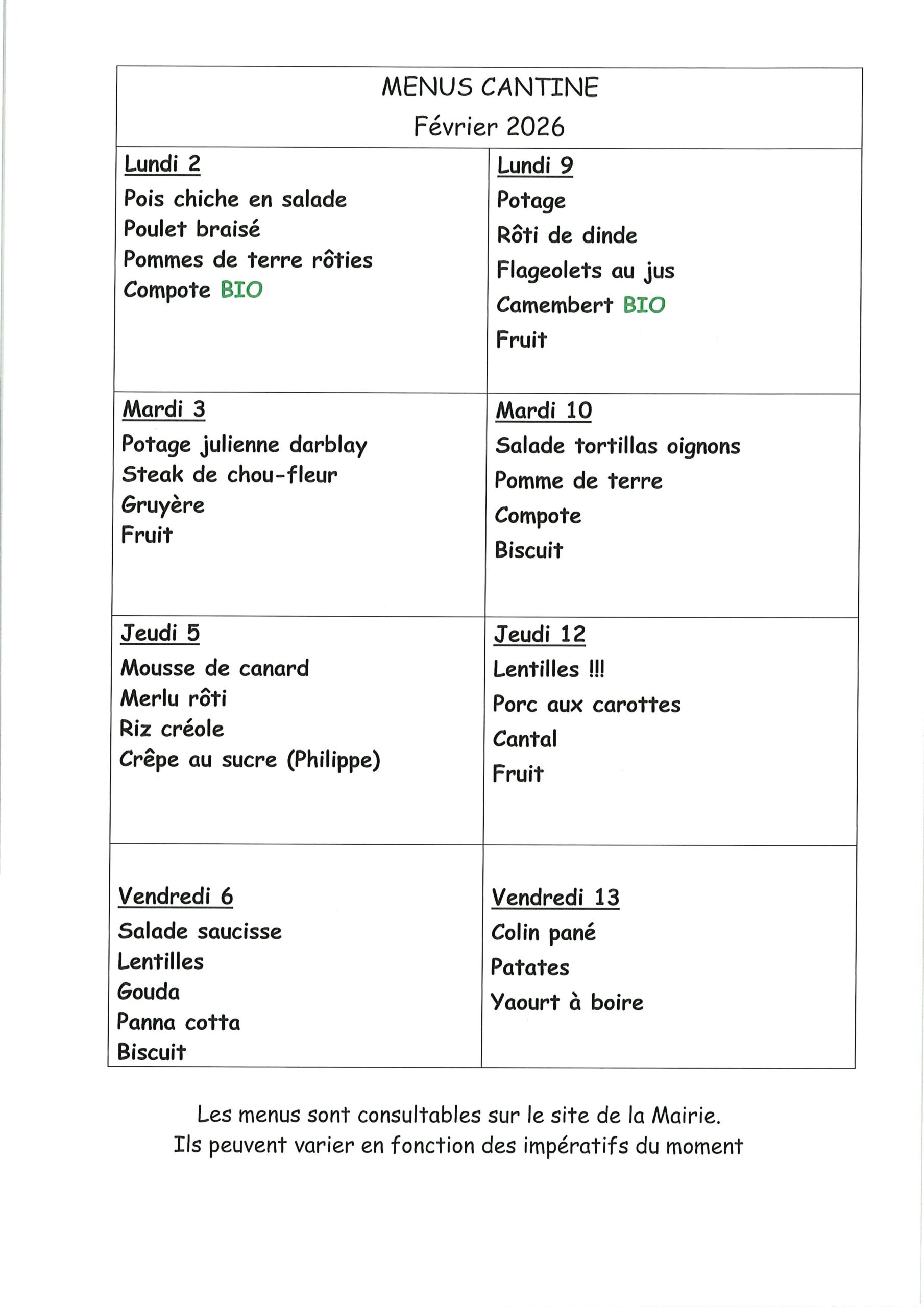 Durant les vacances d’été, merci de contacter directement la mairie.